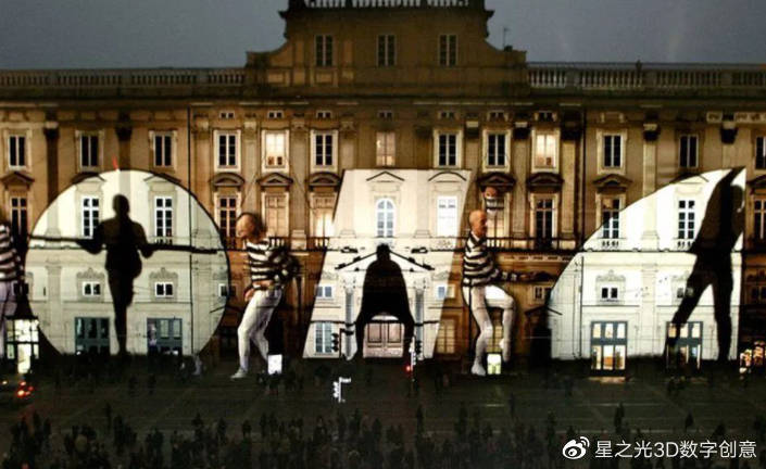將舞蹈演員的運(yùn)動運(yùn)用于建筑立面的動態(tài)投射,產(chǎn)生了一種新奇而又驚人的視覺效果。