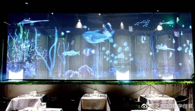 3D全息投影餐廳具有其獨(dú)特的魅力,它可以讓你時而置身海洋世界,時而有群花綻放,時而有亭臺樓閣,讓你在真實(shí)與虛構(gòu)、時間與空間中品味美食、美酒、音樂人生!