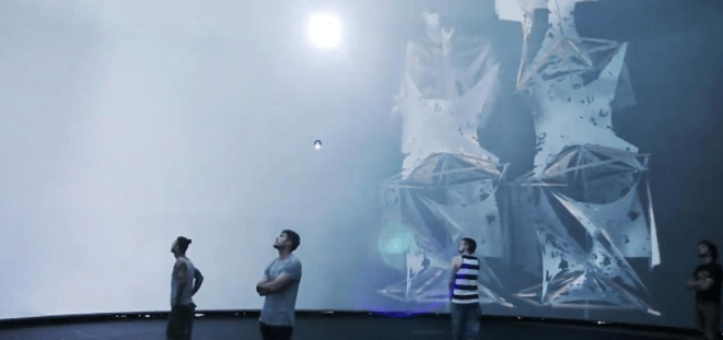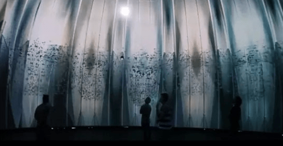 整個展示的場地呈現(xiàn)出的是一種特殊的穹頂結(jié)構(gòu),觀眾處于一個封閉的空間內(nèi),可以感受各種各樣的視覺效果的變化。