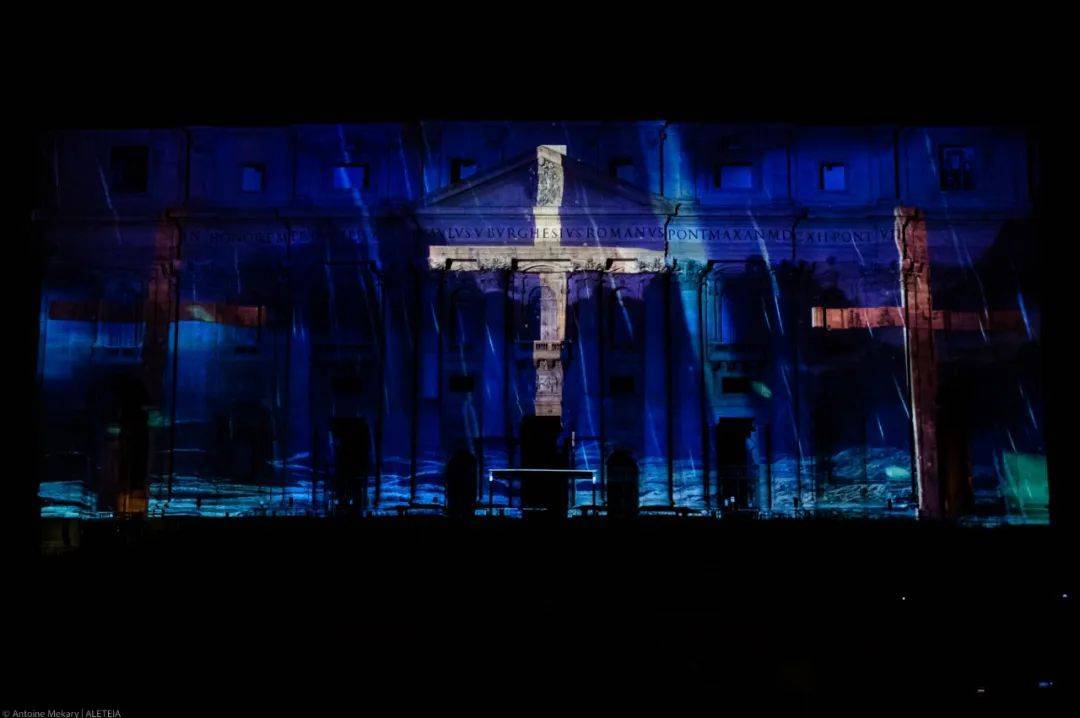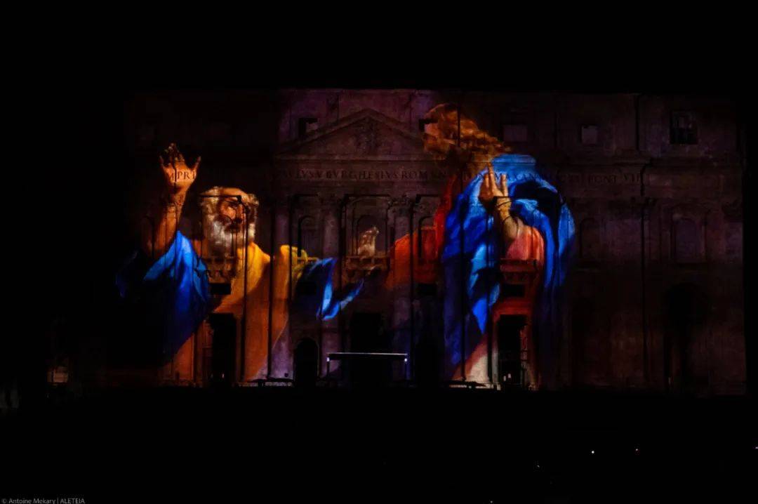 因此,教會以燈光秀的方式點(diǎn)亮圣伯多祿大教堂。教堂正立面每15分鐘(晚上9點(diǎn)到11點(diǎn))被點(diǎn)亮(視頻投影)一次,向人們講述首任教宗圣伯多祿的故事,以此作為即將到來的禧年準(zhǔn)備工作的一部分。