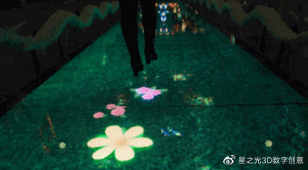 觀眾們可以用自己的肢體動(dòng)作和地面上的畫面進(jìn)行交互,不同的特技效果在他們腳下綻放,給人一種別樣的感覺。