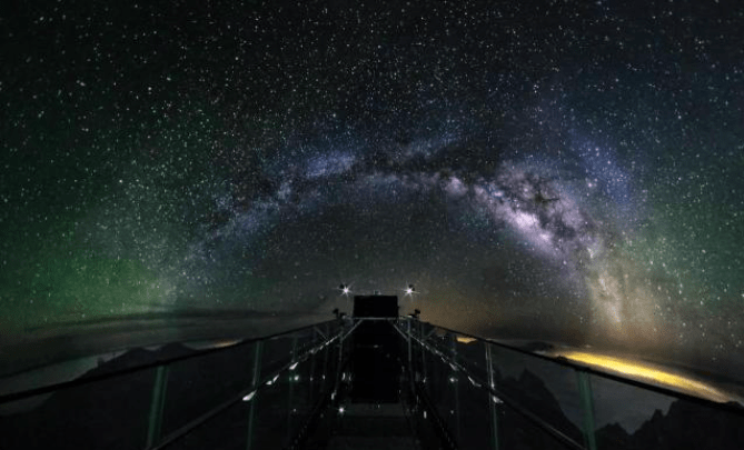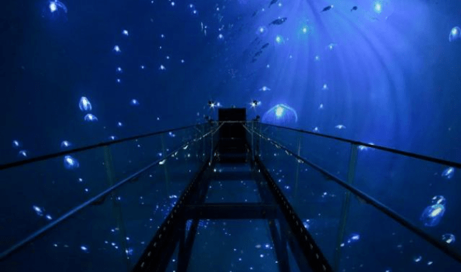 當(dāng)游客們走進(jìn)球體之后,會看到一段透明的玻璃觀景橋穿過球體內(nèi)部,游客們只需站在橋上,便可縱觀“全局”。