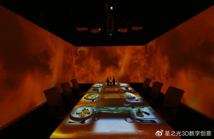 全息投影餐廳采用先進的投影技術(shù)與人體感知技術(shù),制作出一張以沉浸式西餐為主的智能全息餐桌。