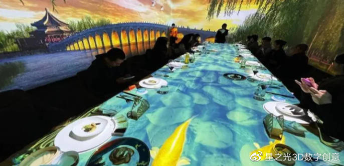 全息光影餐廳是數(shù)字化時代的產物,與傳統(tǒng)餐廳的陳列方式完全不同,它是以墻壁、地面為載體,以裸眼視覺、三維場景、投影設備為載體,將傳統(tǒng)的靜態(tài)餐廳變成了一個動態(tài)的主題視覺場景!