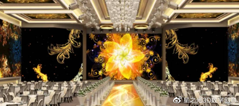 5D全息宴會(huì)廳僅僅只需要少量的軟裝,就可以使整個(gè)婚禮現(xiàn)場(chǎng)的5D效果更加完美,同時(shí)也為新人們節(jié)約了大量的婚禮場(chǎng)地搭建成本。