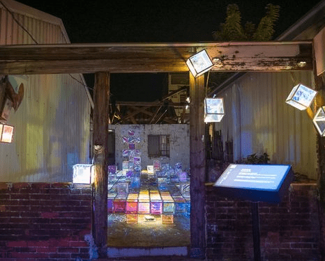 轉(zhuǎn)個彎,來到位在王爺廟巷的幻彩結(jié)晶,在破就荒廢的廢墟中,居然還有這麼美的畫面,很難想像,點(diǎn)燈的方塊燈籠,好像漂浮在建筑的冰晶。