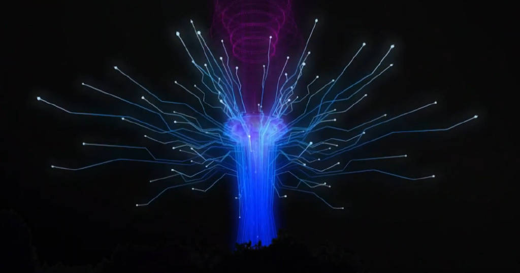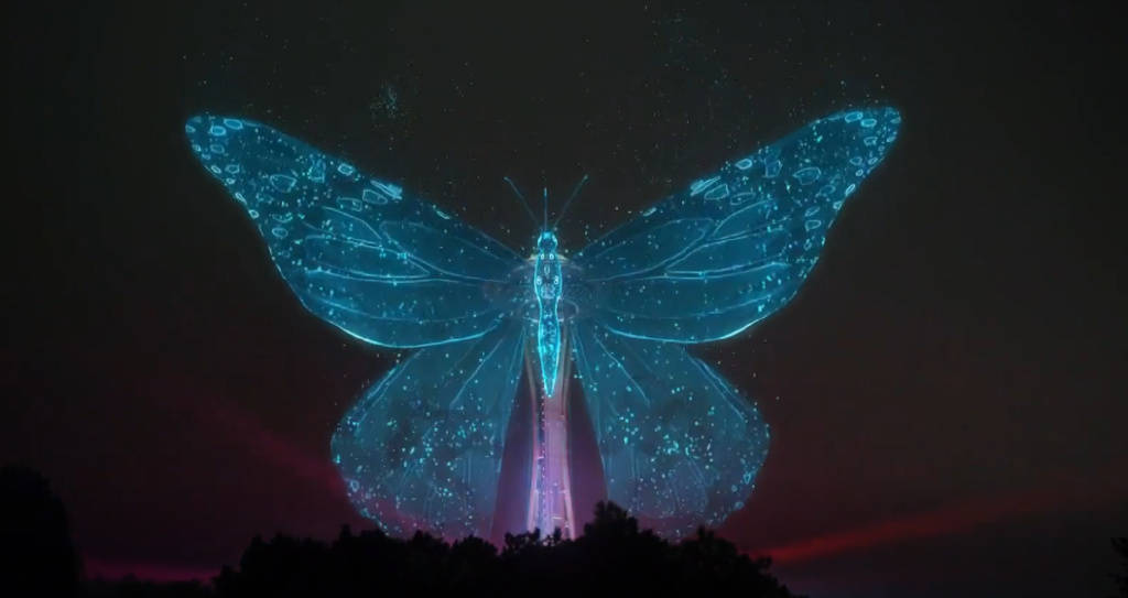 本次“太空針?biāo)睙艄庑銓⑻摂M燈光、投影和特殊效果疊加在太空針?biāo)捌渲車奶炜?,帶?lái)一場(chǎng)魔幻的AR燈光秀。
