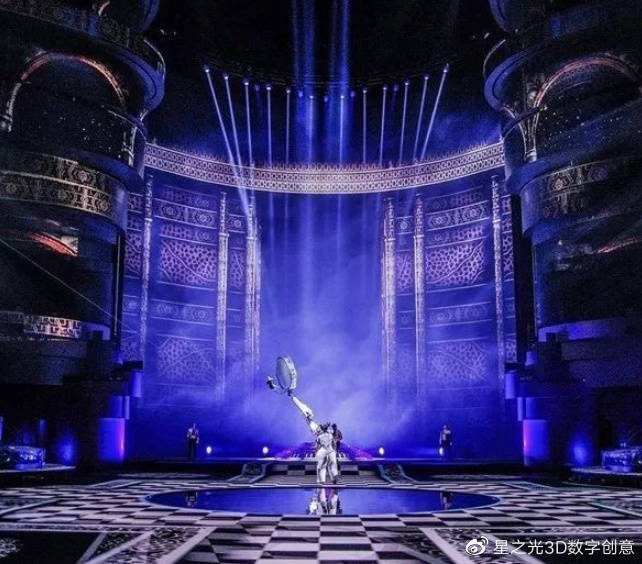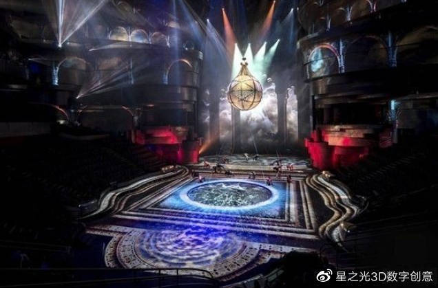 整個演播廳的天花板和墻壁都已經(jīng)被利用了,只有十四排的觀眾可以360度的觀看這場演出。