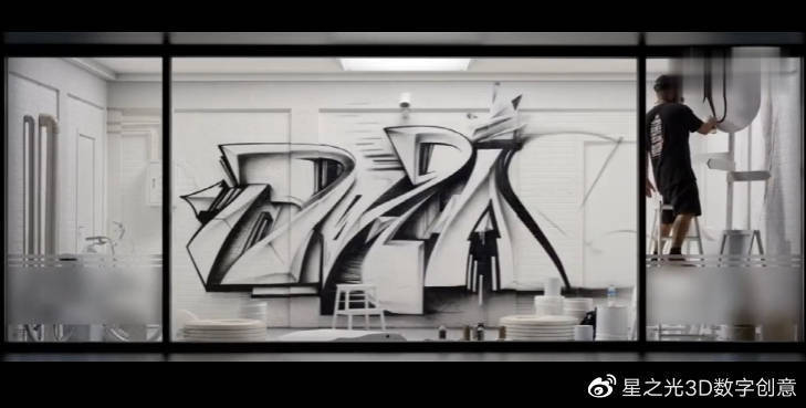 涂鴉與投射相結合,把靜態(tài)的平面藝術化為動態(tài)的光影變換,創(chuàng)造了一種新的藝術體驗,使涂鴉藝術煥發(fā)出新的生機。
